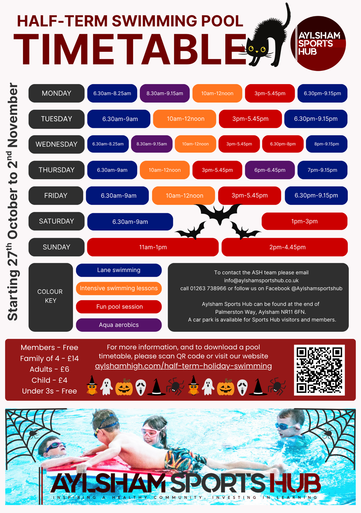 October Half-Term Holiday Swimming Timetable