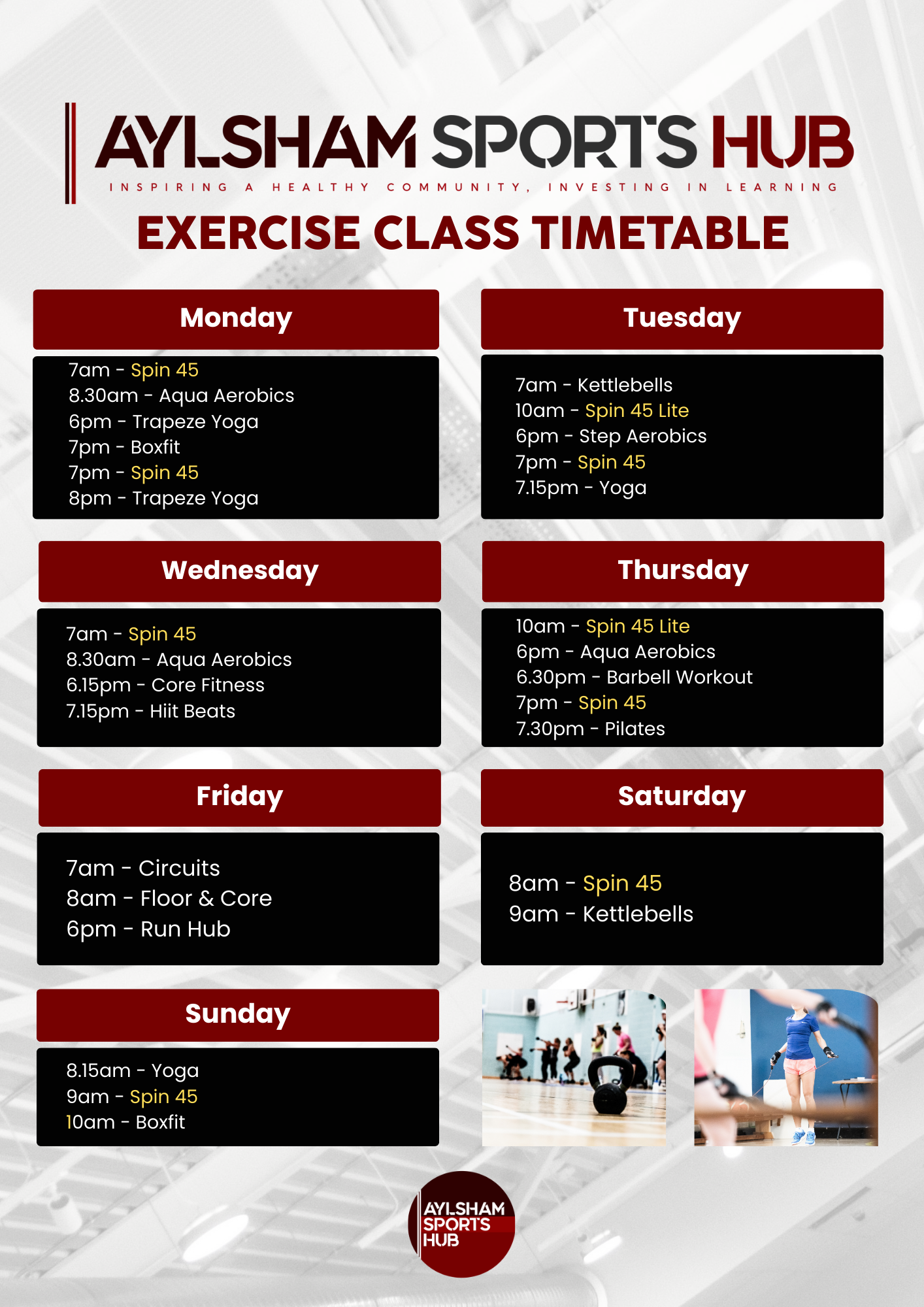 ​Aylsham Sports Hub runs a variety of exercise classes throughout the week.